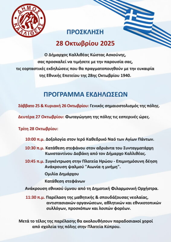 με την ευκαιρία της Εθνικής Επετείου της 28ης Οκτωβρίου 1940