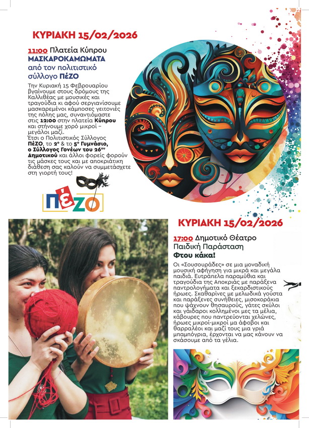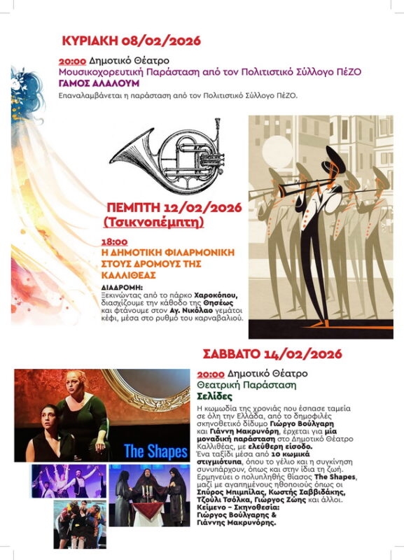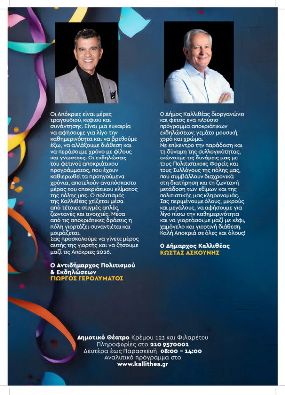 ΑΠΟΚΡΙΕΣ 2026 ΣΤΗΝ ΚΑΛΛΙΘΕΑ – Πρόγραμμα Εκδηλώσεων από Παρασκευή 6/2 έως Καθαρά Δευτέρα 23/2