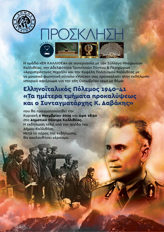 με θέμα: «ΕΛΛΗΝΟΪΤΑΛΙΚΟΣ ΠΟΛΕΜΟΣ 1940-1941 – ΤΑ ΗΜΕΤΕΡΑ ΤΜΗΜΑΤΑ ΠΡΟΚΑΛΥΨΕΩΣ ΚΑΙ Ο ΣΥΝΤΑΓΜΑΤΑΡΧΗΣ Κ. ΔΑΒΑΚΗΣ»
