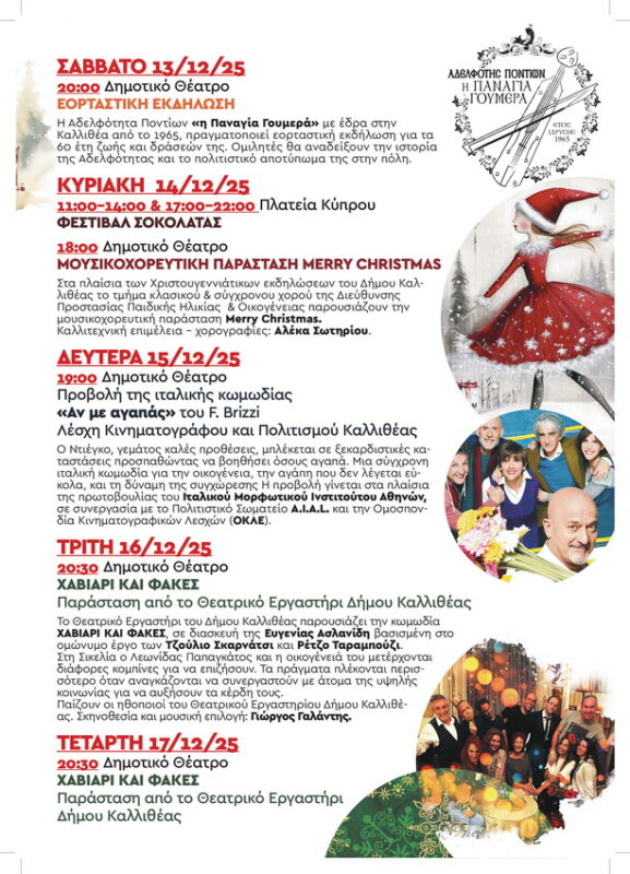Από 12/12 έως 21/12/2025 κάθε απόγευμα 17:00 με 20:30