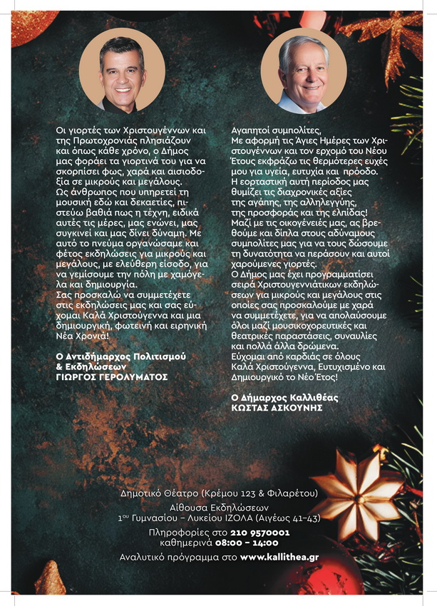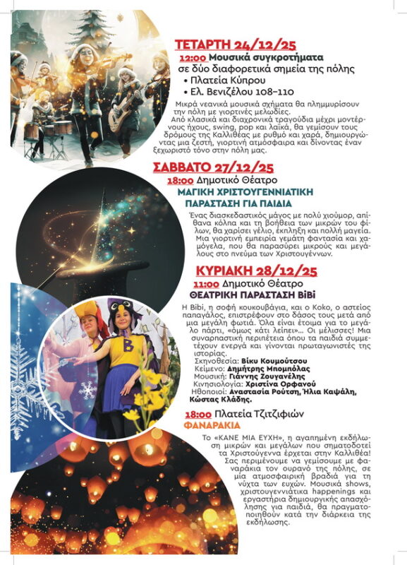 Σας προσκαλούμε να γίνετε μέρος αυτής της μεγάλης γιορτής, που έχει σκοπό να προσφέρει σε όλους μας ζεστασιά, χαμόγελο και ελπίδα.