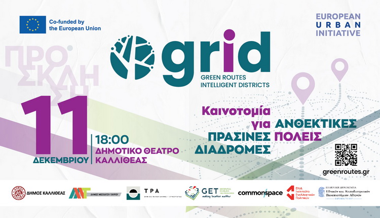 Οι Δήμοι Καλλιθέας και Μοσχάτου–Ταύρου πραγματοποιούν την εναρκτήρια εκδήλωση του Ευρωπαϊκού έργου GRID (Green Routes Intelligent Districts), το οποίο υλοποιείται στο πλαίσιο της πρωτοβουλίας European Urban Initiative (EUI) με τη χρηματοδότηση της Ευρωπαϊκής Ένωσης. Η εκδήλωση θα πραγματοποιηθεί την Πέμπτη 11 Δεκεμβρίου, στις 18:00, στο Δημοτικό Θέατρο Καλλιθέας.