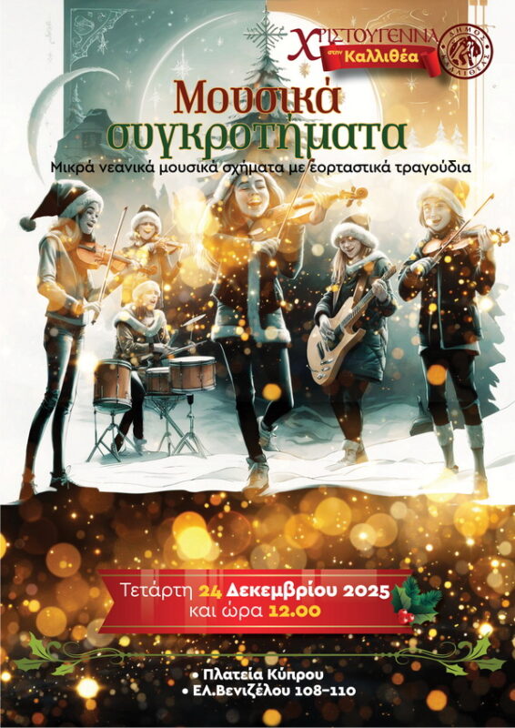 Μικρά νεανικά μουσικά σχήματα θα πλημμυρίσουν την πόλη με γιορτινές μελωδίες, στην Πλατεία Κύπρου και στην Ελ. Βενιζέλου 108-110.