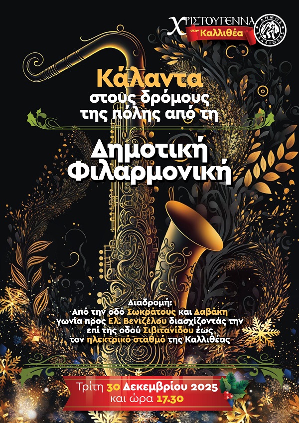 Η Δημοτική Φιλαρμονική θα περιηγηθεί στους δρόμους της πόλης, παρουσιάζοντας τα κάλαντα.