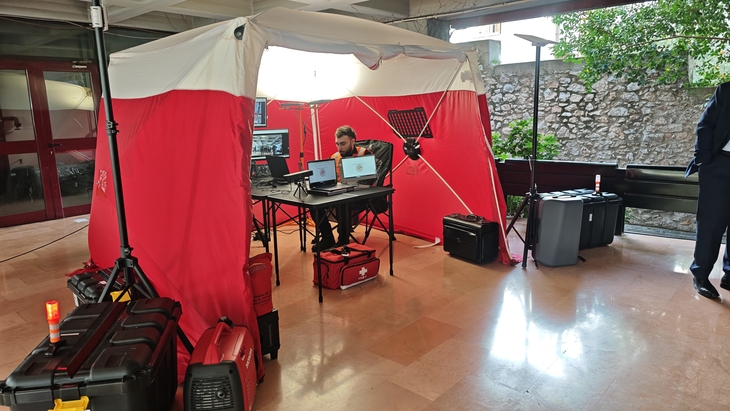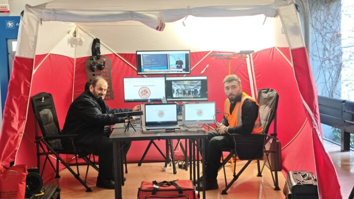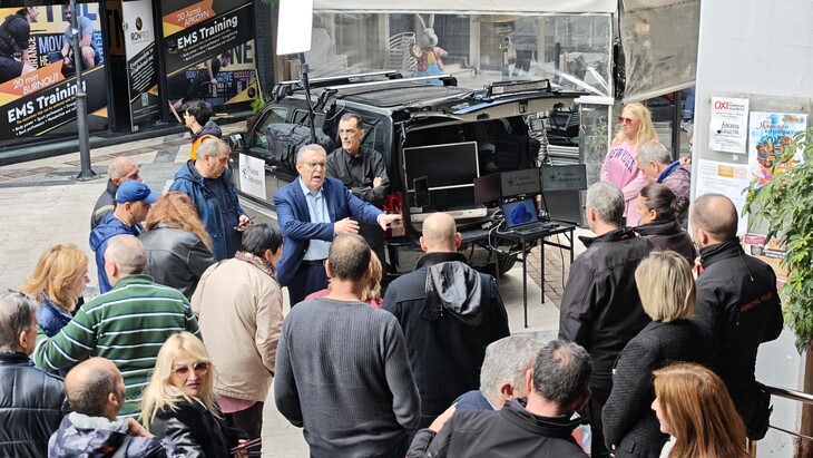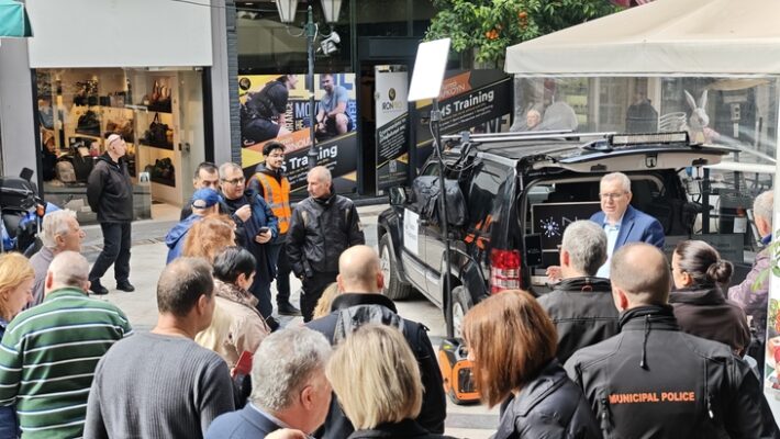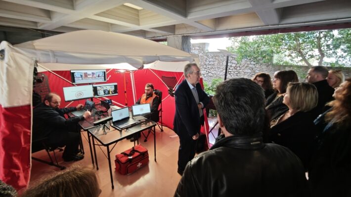 Ακολούθησε επίδειξη της λειτουργίας Κινητών Επιχειρησιακών Κέντρων Πολιτικής Προστασίας σε περίπτωση που δεν μπορούν να χρησιμοποιηθούν τα κτίρια του Δήμου.