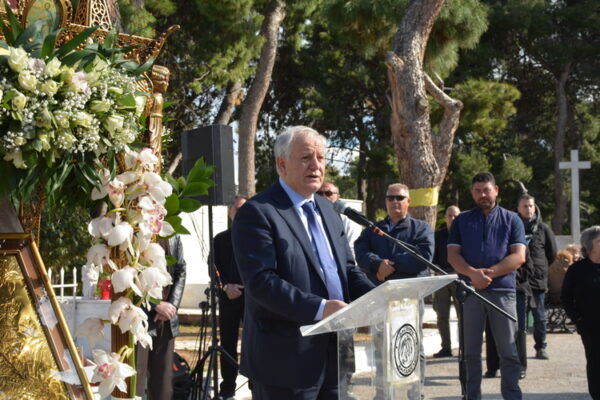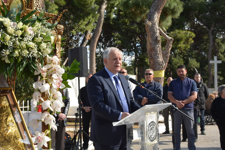Ο Δήμαρχος Καλλιθέας, στον σύντομο χαιρετισμό του, αναφέρθηκε στη διαχρονική αξία της μνήμης, της συνέχειας και της ενότητας, στοιχεία που στηρίζουν την κοινωνία και τον πολιτισμό μας και κατέθεσε στεφάνι αποτίοντας φόρο τιμής.