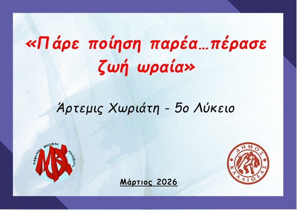 Για ακόμη μία χρονιά, η Καλλιθέα μετατρέπεται σε έναν μεγάλο χώρο δημιουργίας, όπου η νέα γενιά εκφράζεται, συνεργάζεται και δίνει το δικό της πολιτιστικό στίγμα.