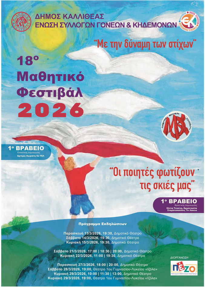 Την Παρασκευή 13 Μαρτίου ανοίγει τις πύλες του το 18ο Μαθητικό Φεστιβάλ Καλλιθέας, με τίτλο «Με τη δύναμη των στίχων».